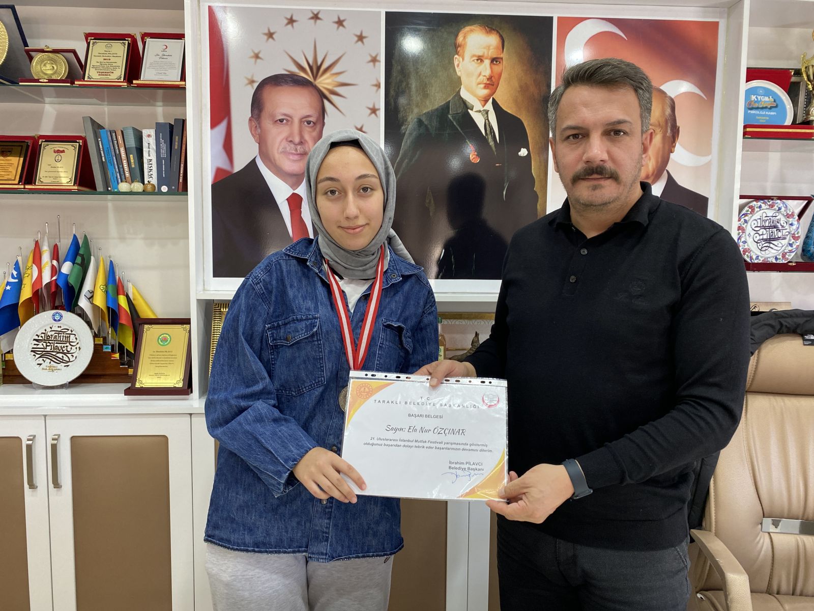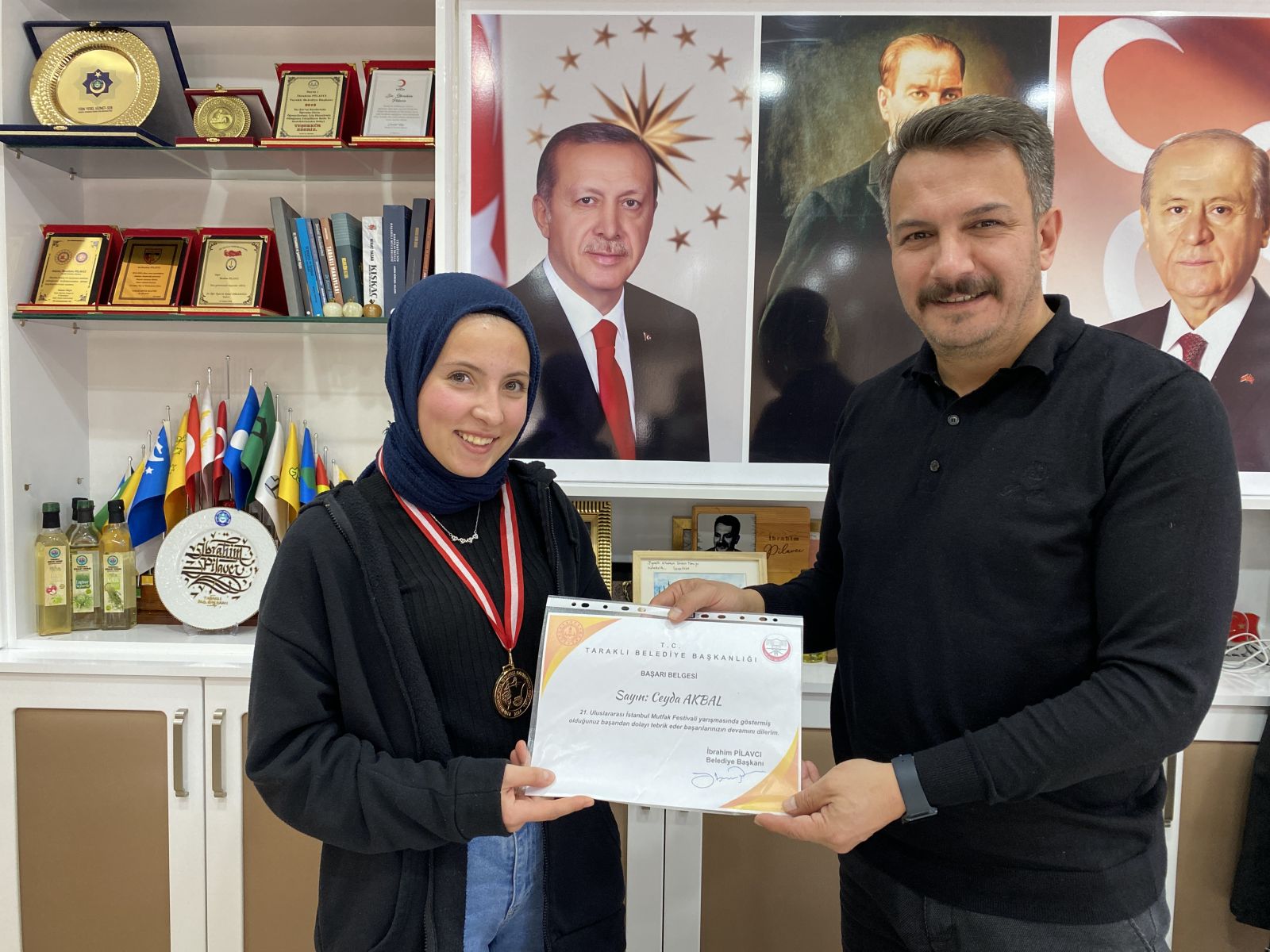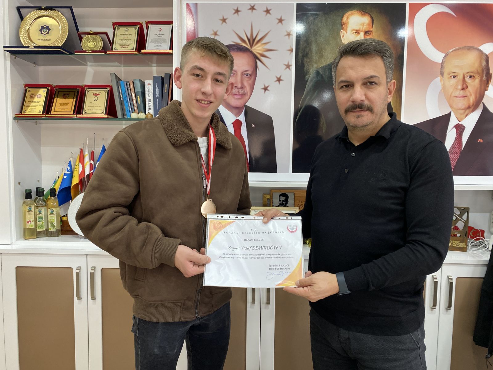 Belediye Başkanımız Sn. İbrahim Pilavcı, 21. Uluslararası İstanbul Mutfak Günleri Festivali’nde Restoran tatlı tabağı kategorisinde; Altın ve Gümüş madalya kazanan Yusuf Demirdöyen ,Ceyda Akbal ve Ela Nur Özçınar ve öğretmenlerini kabul etti.